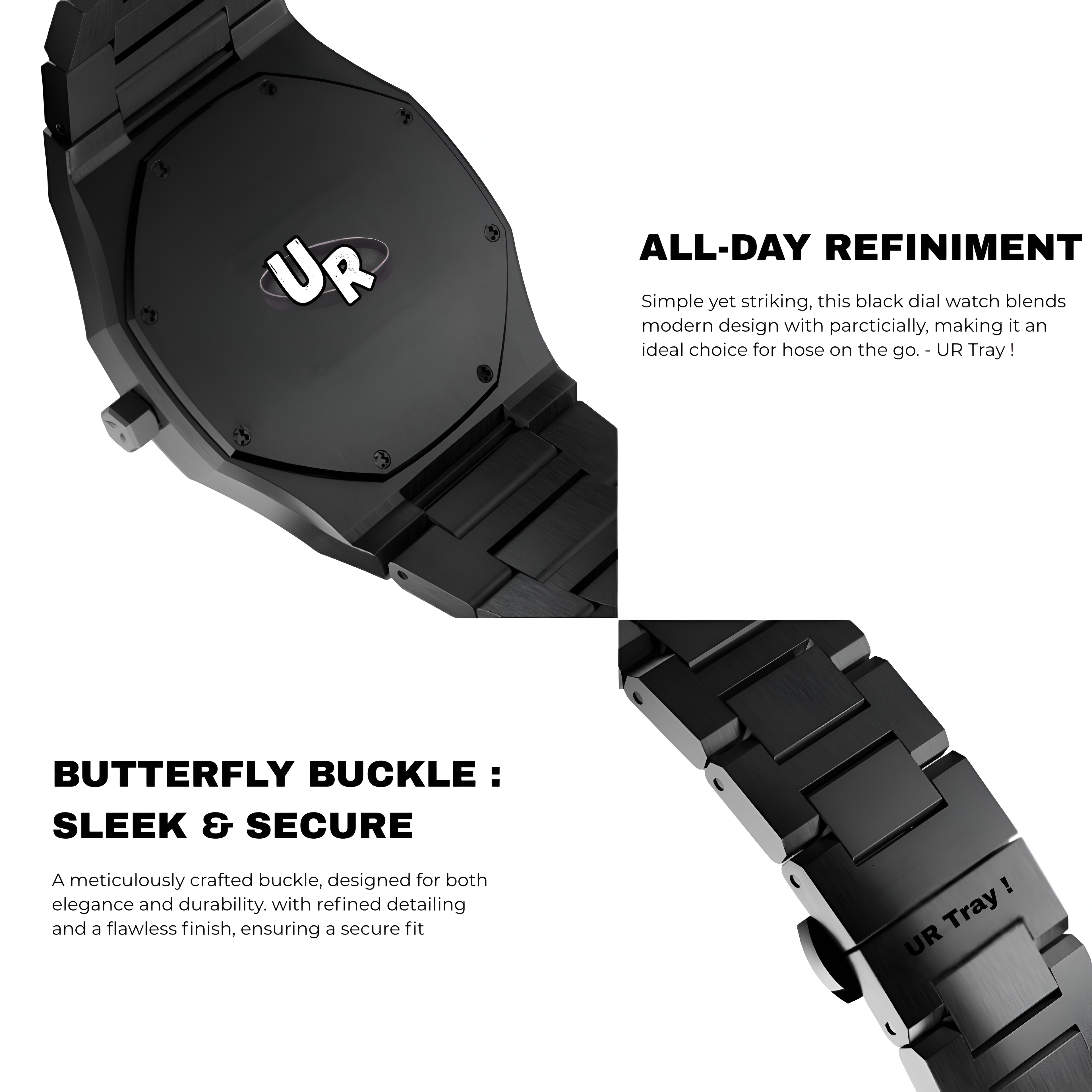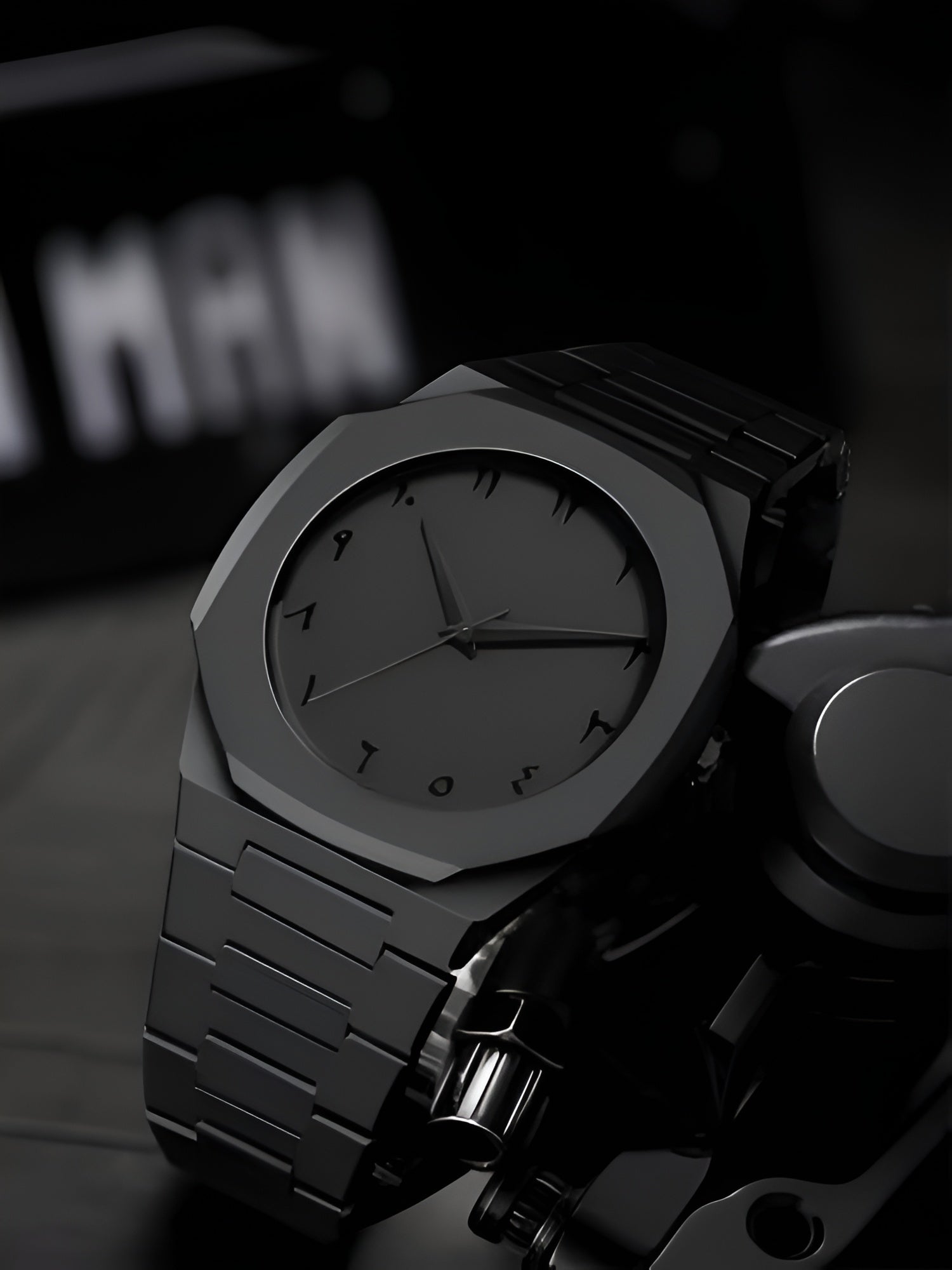 All-Black Watch, Stealth Watch, Minimalist Watch, Blackout Watch, Modern Watch, Black Stainless-Steel Watch, PVD Black Watch, Black Metal Watch, Polygonal Watch, Angular Watch, Integrated Bracelet Watch, Men's Minimalist Watch, Luxury Style Watch, Men's Dress Watch